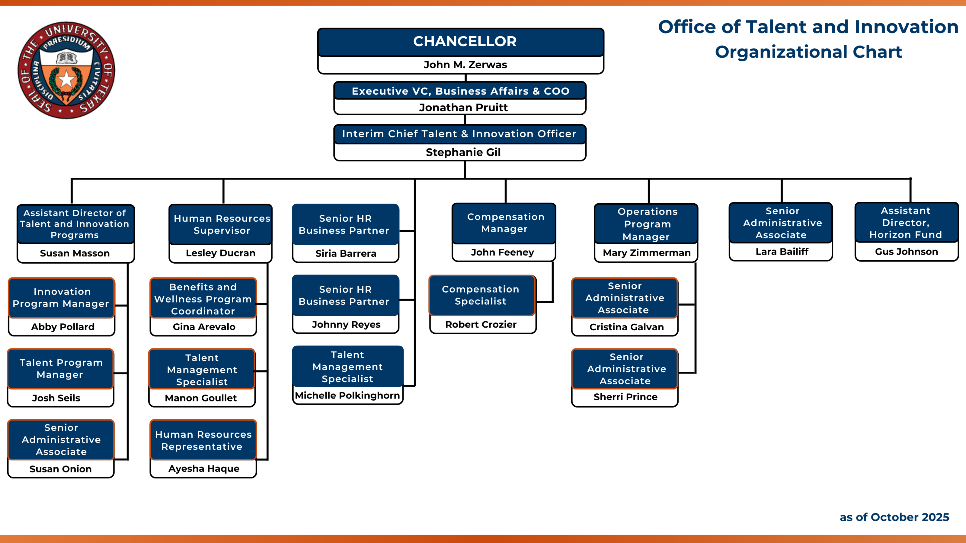 ![]() | Stephanie Gil, PHR, SHRM-CP, SHRBP Interim Chief Talent & Innovation Officer (512) 499-4218 sgil@utsystem.edu |