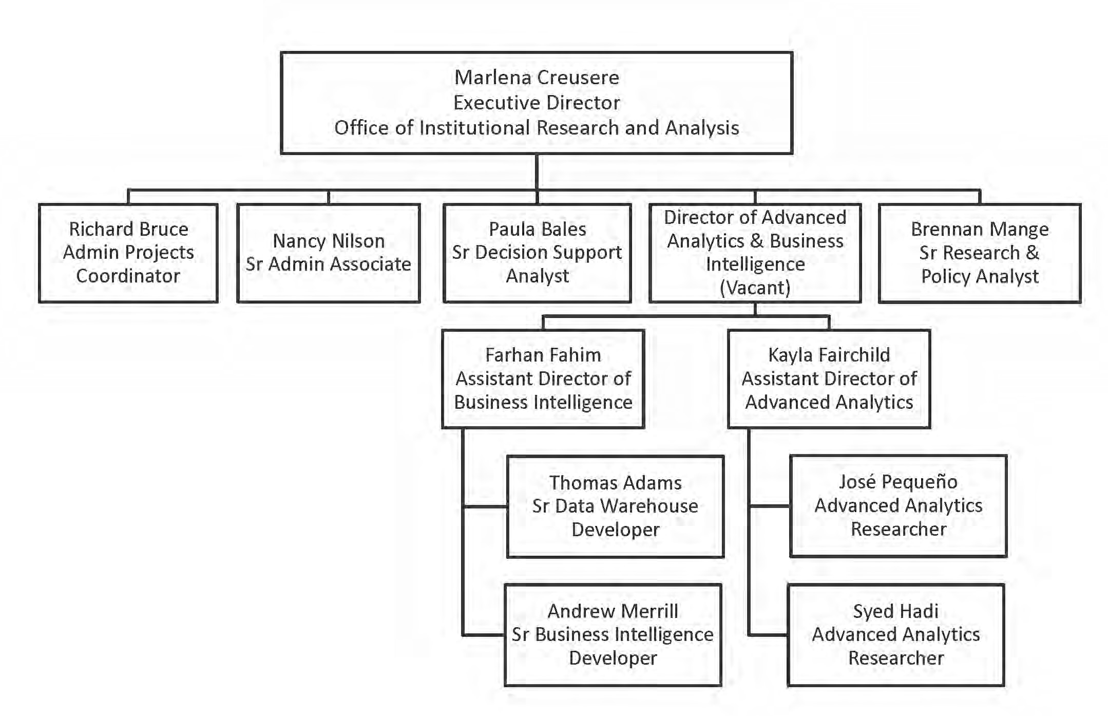 - [Vacant] MPAff, Director of Advanced Analytics & Business Intelligence